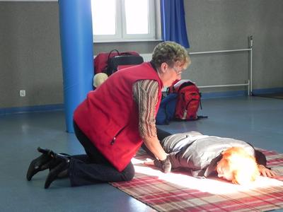 Wobec powyższego faktu w naszej szkole zorganizowane zostały pokazowe zajęcia z udzielania pierwszej pomocy w ramach programu edukacyjnego „Doskonalenie umiejętności w zakresie pierwszej pomocy”. Program ten realizowany jest przez polski Czerwony Krzyż, współfinansowany przez Powiat Wyszkowski. Spotkanie przeprowadziła Pani Grażyna Borkowska z Powiatowe Stacji Epidemiologiczno-Sanitarnej z Wyszkowa.