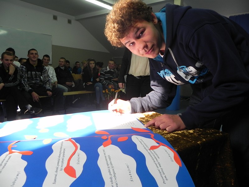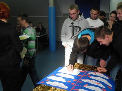 Po ślubowaniu uczniowie klasy I złożyli podpisy na akcie ślubowania, odebrali też upominki: długopis i notes do zapisywania najważniejszych informacji. Życzenia złożyli im starsi koledzy. Mamy nadzieję, że będą się dobrze czuli w swojej nowej szkole.