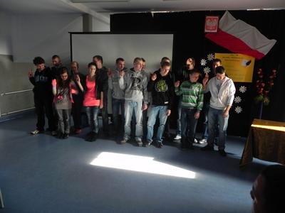 Całość uroczystości zakończyła się małym sprawdzianem ze znajomości osób naszej szkoły. Ks. Grzegorz Chełstowski przygotował serię zdjęć uczniów i nauczycieli, które poddał specjalnym przeróbkom poprzez doklejenie wąsów, zmianę fryzury czy niecodzienny makijaż. Każdy mógł się podziwiać w nowej odsłonie i czasami wcale nie było łatwo odgadnąć imię osoby przedstawionej na fotografii. Efekt przeszedł nasze oczekiwania. Mamy nadzieję, że wszyscy dobrze się bawili.