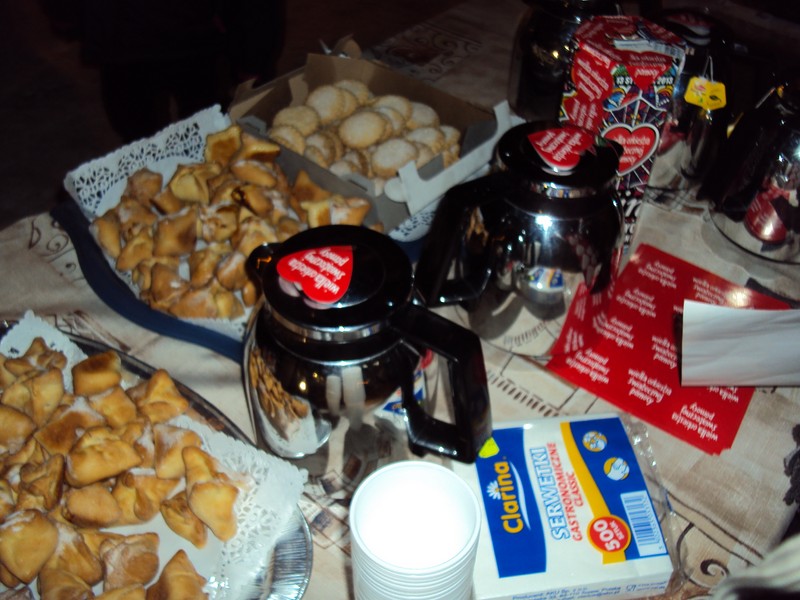 Zbiórkę wspomagały nasze szkolne wypieki – kruche ciasteczka, ziemniaczane pączki, oponki i drożdżówki. Dodatkowo, przy naszym stoisku każdy mógł się ogrzać ciepłą herbatą lub kawą z mlekiem. W czasie zbiórki mogliśmy podziwiać występy młodszych kolegów z okolicznych placówek szkolnych oraz zespołyBaston i Effect.