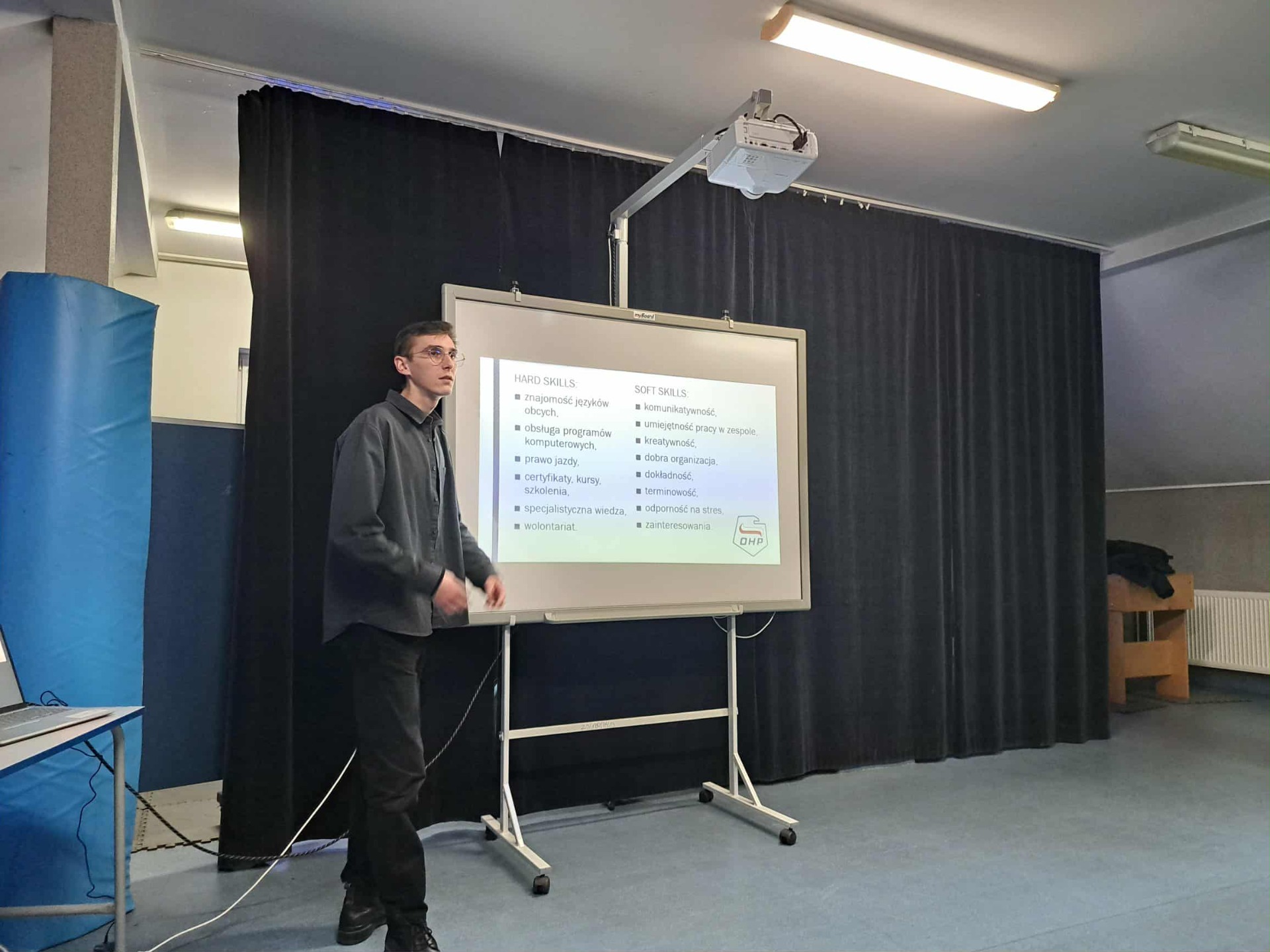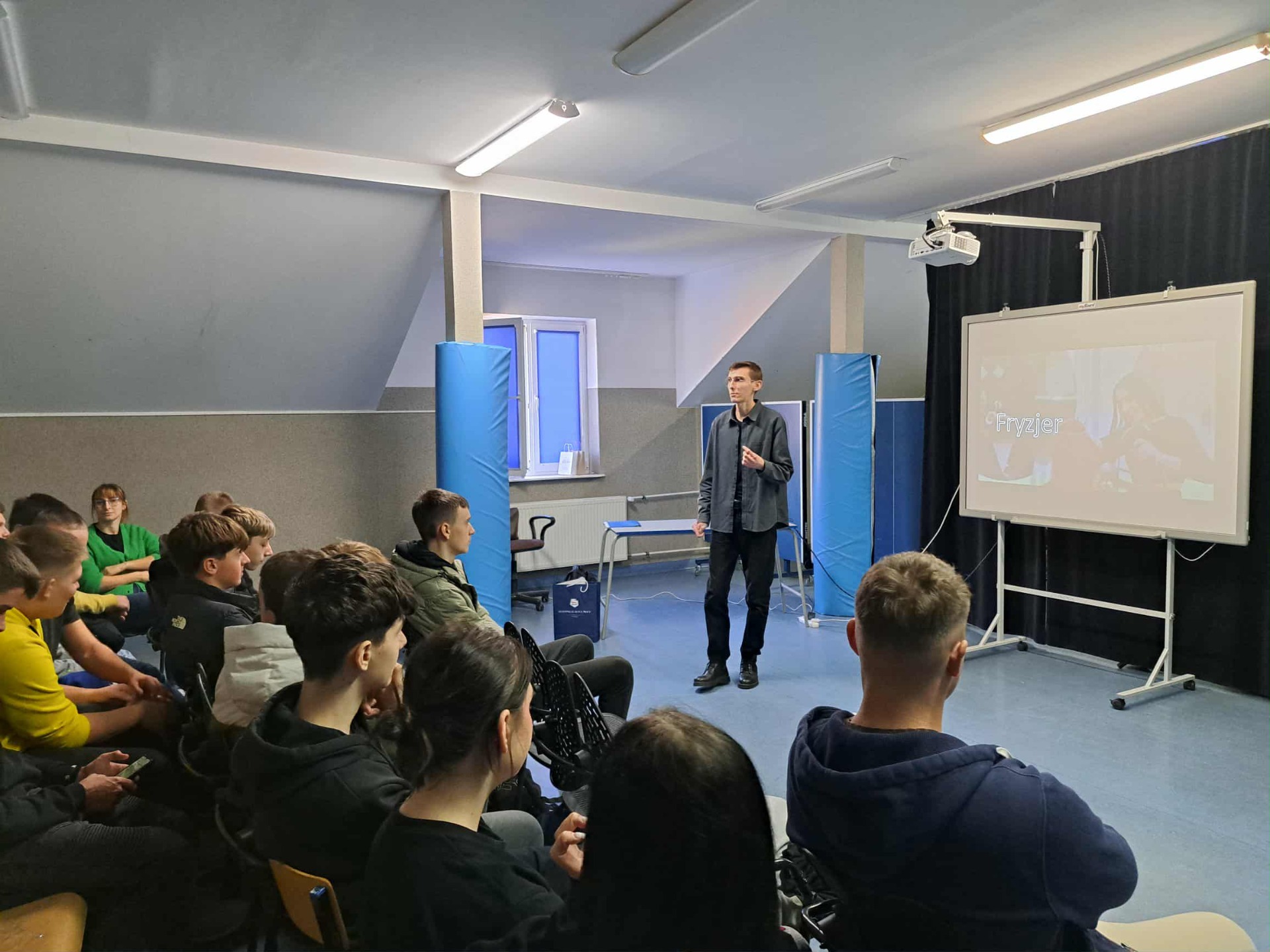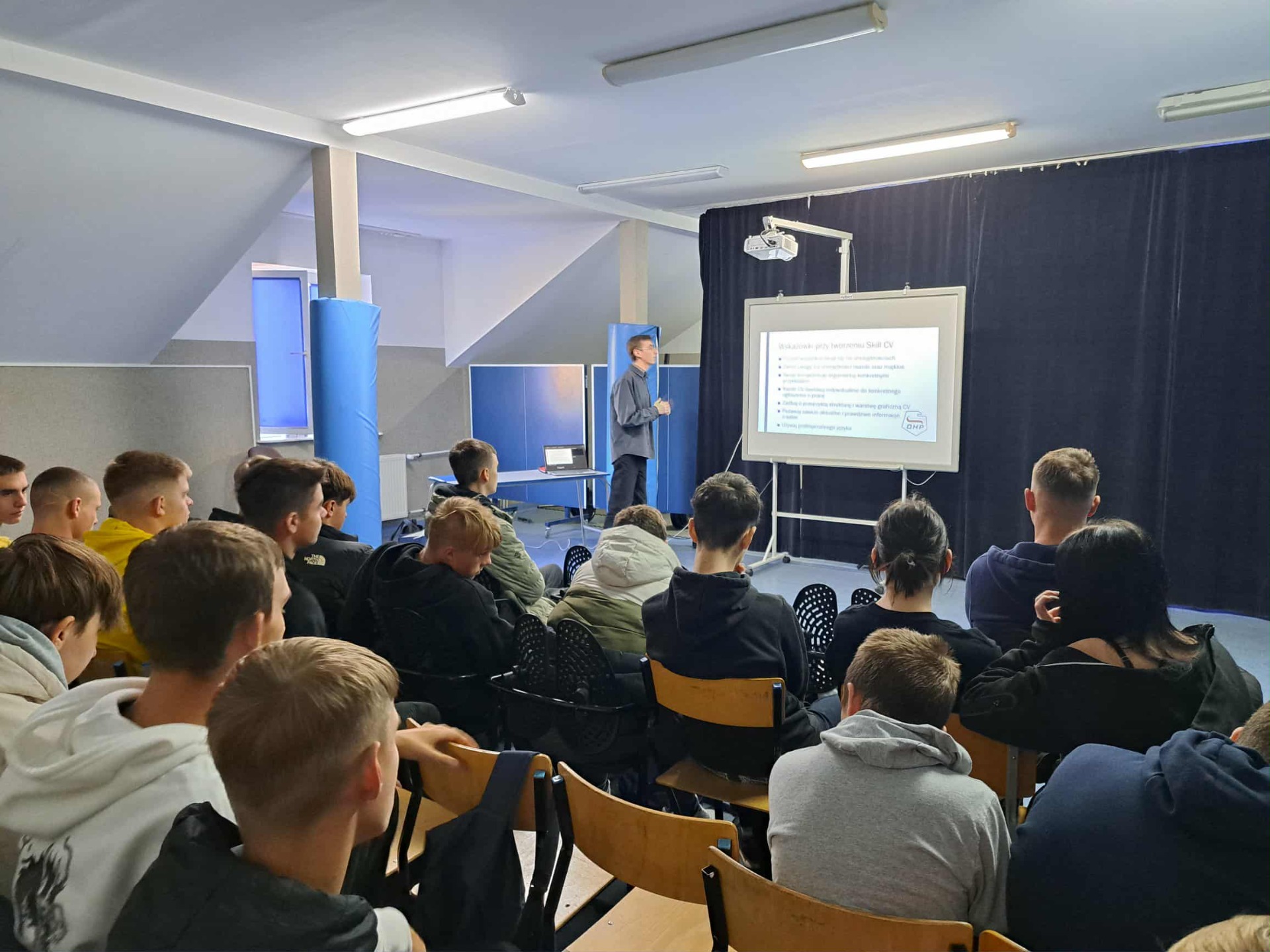 Zajęcia miały charakter praktyczny i angażujący – uczestnicy aktywnie brali udział w ćwiczeniach, dzielili się swoimi doświadczeniami i zadawali pytania. Doradca zawodowy podkreślał znaczenie relacji międzyludzkich w procesie rekrutacji oraz rolę kompetencji miękkich w budowaniu kariery. Spotkanie było nie tylko okazją do zdobycia wiedzy, ale również do integracji i wzajemnego wsparcia.
