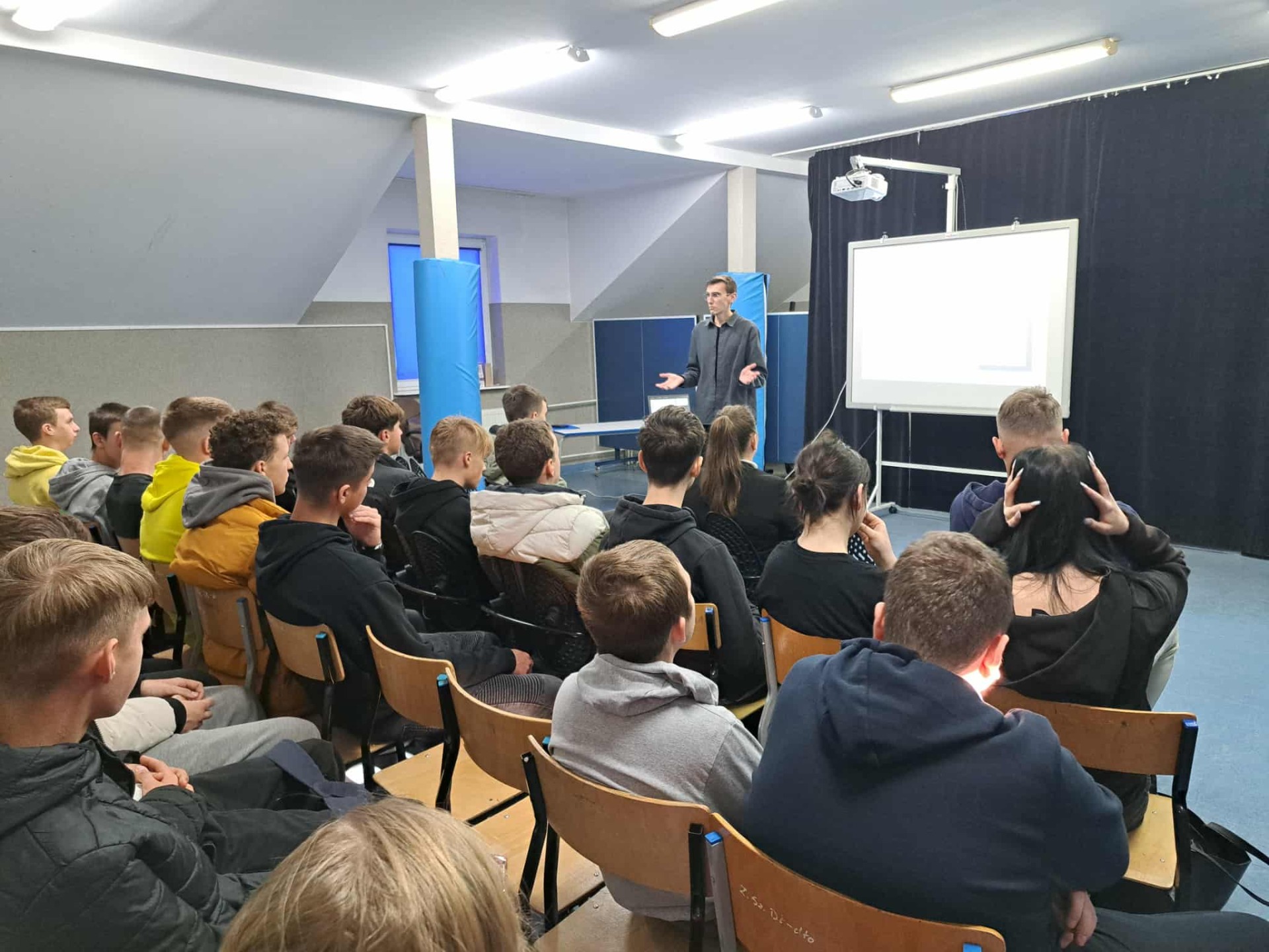 W Zespole Szkół w Długosiodle odbyło się wyjątkowe spotkanie zorganizowane w ramach Ogólnopolskiego Tygodnia Kariery 2025, którego hasło brzmiało „Siła relacji w erze samotności”. To ogólnopolska inicjatywa, której celem jest wspieranie młodzieży w świadomym planowaniu ścieżki zawodowej oraz budowaniu relacji społecznych niezbędnych w życiu zawodowym. W wydarzeniu wzięli udział uczniowie klas branżowych, którzy wspólnie uczestniczyli w warsztatach prowadzonych przez doradcę zawodowego z OHP – Pana Damiana Ordaka. Tematem przewodnim zajęć było Skill CV – nowoczesna forma prezentacji kompetencji i umiejętności zawodowych. Młodzież dowiedziała się, jak skutecznie tworzyć takie dokumenty oraz gdzie je składać, uwzględniając specyfikę zawodów, w których się kształcą, takich jak mechanik pojazdów samochodowych, fryzjer czy kucharz.