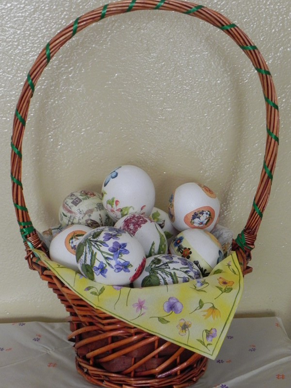 Zaproszeni goście p. Lilla Jagiełło i p. Iwona Rychlik zaplanowały dla uczestników dekorowanie styropianowych jaj. Pracy było sporo, a czasu jak zwykle mało. Wszystkim jednak zależało, aby ozdoby były wykonane starannie i estetycznie. W efekcie powstały jaja wielkanocne przyozdobione w finezyjne wzory serwetkowe, które z pewnością znajdą swoje miejsce w wielkanocnych koszyczkach uczestników warsztatów.