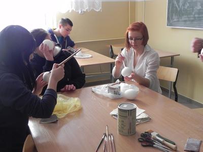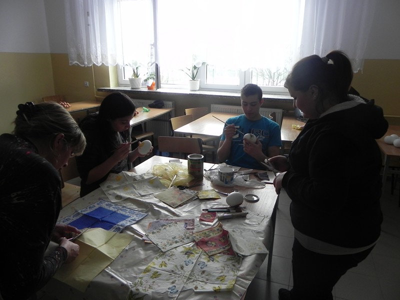 W ramach godzin do dyspozycji wychowawcy uczniowie kl. II ZSZ wraz z wychowawcą zorganizowali przed Świętami Wielkanocnymi warsztaty ozdób techniką decoupage.