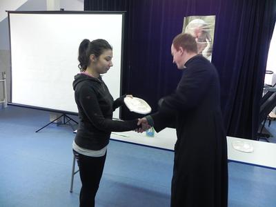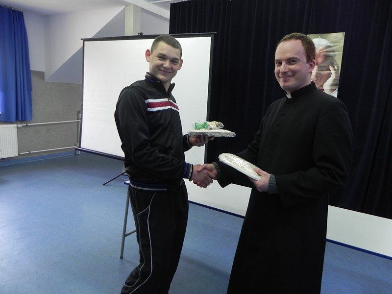 Nagrody w formie figur gipsowych przygotowane własnoręcznie przez ks Grzegorza Chełstowskiego otrzymali: