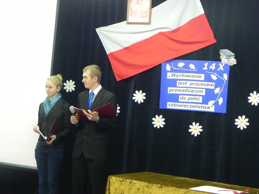 15 października 2013 roku uroczyście obchodziliśmy w naszej szkole DEN popularnie zwany Dniem Nauczyciela, bo to w ich stronę płyną podziękowania i życzenia za wspólne chwile spędzone w murach szkoły. Szkolną uroczystość prowadzili uczniowie klasy II ZSZ – Anita Kowalska, Kamil Krupka i Piotr Święch. Po krótkim wstępie dotyczącym historii i działalności Komisji Edukacji Narodowej powołanej przez Sejm Rozbiorowy 14 października 1773 roku na wniosek króla Polski Stanisława Augusta Poniatowskiego, przedstawiciele SU w imieniu wszystkich uczniów złożyli życzenia Pani Dyrektor, Nauczycielom i Pracownikom Szkoły: