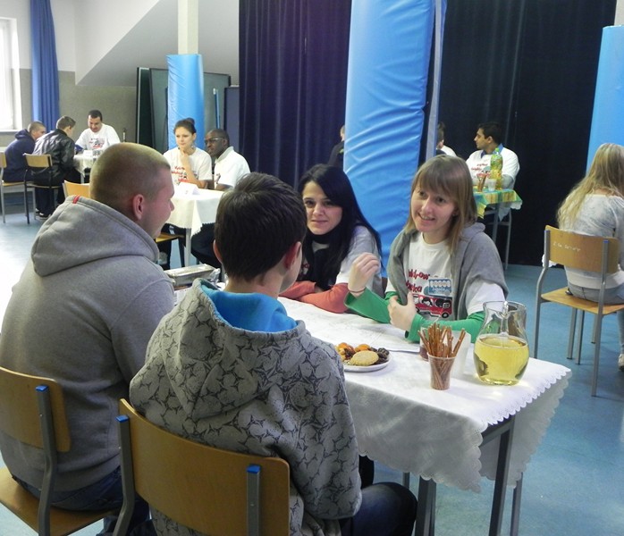 Podczas spotkań z „Książkami” panowała przyjazna i komfortowa atmosfera. Siedzieliśmy wygodnie, przy osobnych stołach, mieliśmy pod ręką coś do jedzenia i picia – tak jak na spotkaniu z dobrym znajomym. Rozmówcom w razie potrzeby towarzyszył tłumacz – bibliotekarz-wolontariusz, ponieważ nie wszyscy znali język polski. Jego pomoc była nieodzowna przy zadawaniu pytań i udzielaniu odpowiedzi – Ci, którzy czuli się swobodnie mogli rozmawiać po angielsku. Niesamowite wrażenia jakich doświadczyliśmy podczas spotkania z tak ciekawymi ludźmi jeszcze długo komentowaliśmy na szkolnym korytarzu: „Gdybym pojechał do Somalii, przeżyłbym szok kulturowy” – to najczęstszy komentarz, jaki można było usłyszeć. Nauczyliśmy się, że najpierw trzeba dobrze kogoś poznać, jego kulturę, obyczaje, religię, a dopiero później oceniać. Wiemy, że choć nie ruszyliśmy się właściwie z miejsca, to w pewien sposób dotknęliśmy wielkiego świata, ciekawych ludzi, ale też smutnych historii, odmiennych problemów.