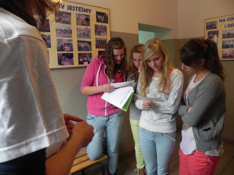 W grze terenowej Globotropiciel” wzięły udział 5-osobowe drużyny (Biali, Czerwoni, Niebiescy, Żółci). Uczniowie klasy I Zasadniczej Szkoły Zawodowej mieli do rozwiązania 6 zadań wymagających sprytu, szybkości i kreatywności, a także i wiedzy. Podczas gry odkrywaliśmy „Tajemnicę Globalnych Zależności. Jedno z zadań dotyczyło sposobów oszczędzania wody, problemów z dostępem do wody pitnej. Inne polegało na tym, by ustalić z jakiego kraju pochodzą różne części ubrań, odszukać te państwa w atlasie i zaznaczyć na mapie. Kolejne to ustalanie, z jakich powodów i ile marnuje się jedzenia i czy można coś z tym zrobić. Należało także odpowiedzieć na pytania dotyczące oszczędzania energii, wody, ochrony powietrza, ale punkty zdobywało się dopiero po celnym rzucie do kosza. W innym zadaniu należało ustalić i wybrać najlepszy środek lokomocji, aby dotrzeć z Warszawy do Pragi. Ważnym zadaniem okazało się też to, dotyczące edukacji – jak wielu ludzi (w tym i dorosłych) nie ma dostępu do nauki, nie umie czytać i pisać. Zadania te uświadomiły nam, że jest wiele problemów wokół nas, ale dzięki pracy zespołowej nie tylko szybko je zdefiniowaliśmy, ale dostrzegliśmy też sposoby, by poradzić sobie z nimi. Wiemy też, że nie ma na świecie problemów, o których moglibyśmy powiedzieć, że nas nie dotyczą, że są zbyt odległe czy skomplikowane. To właśnie MY, jako młode pokolenie wchodzące w życie będziemy musieli sobie z nimi poradzić. Dlatego warto było poświęcić dzisiejszy czas na to by te kwestie poznać, zrozumieć i wspólnie stawić im czoła.